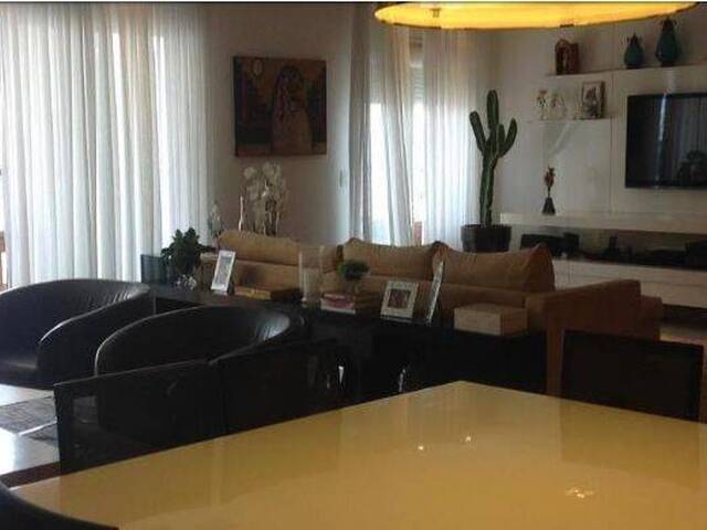 Apartamento mobiliado, com decoração de extremo bom gosto, móveis Dpot e de antiquários, 3 suítes com ar-condicionado quente e frio. Amplas salas de estar e jantar com adega p/ 70 garrafas, e sala de TV com projetor multimídia. Terraço gourmet com churrasqueira, fogão cooktop, geladeira. Lavabo, cozinha integrada com sala de almoço, elevador privativo, 3vagas de garagem. Alto padrão.